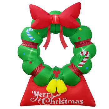 Vrolijk Kerstdecor 7ft Gigantische Opblaasbare Kerstkrans Met Rode Strik Andy Wandelstokken En Led-Verlichting Voor Tuingazonfeest